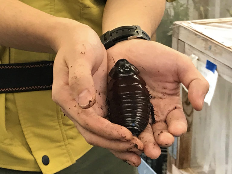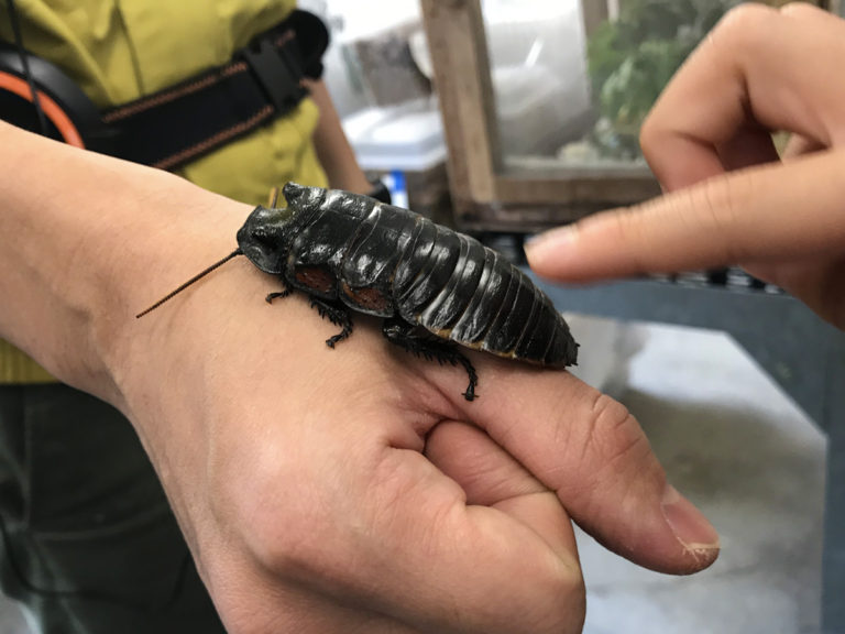 今回はヒッシングコックローチというゴキブリの仲間を触らせてもらいました。