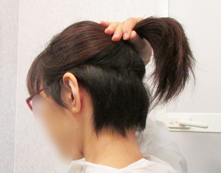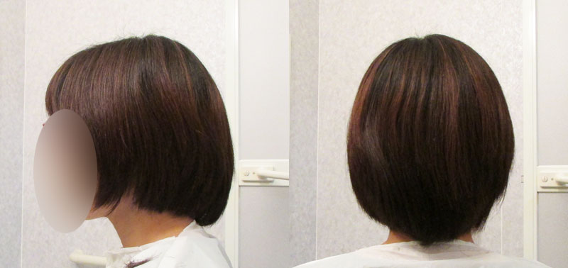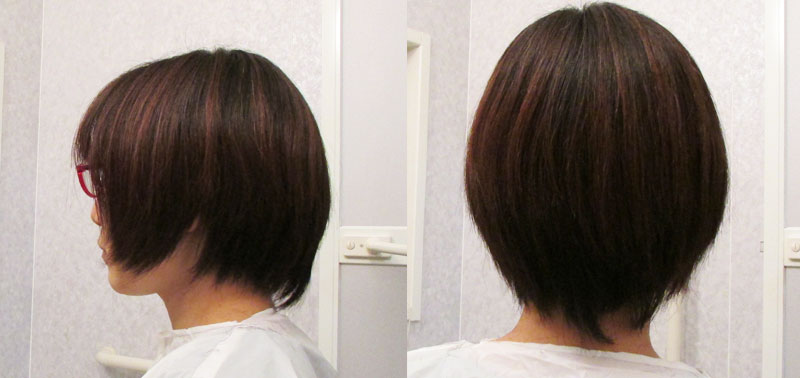 もう冬なので、ツーブロックはやめて普通のショートボブにします。