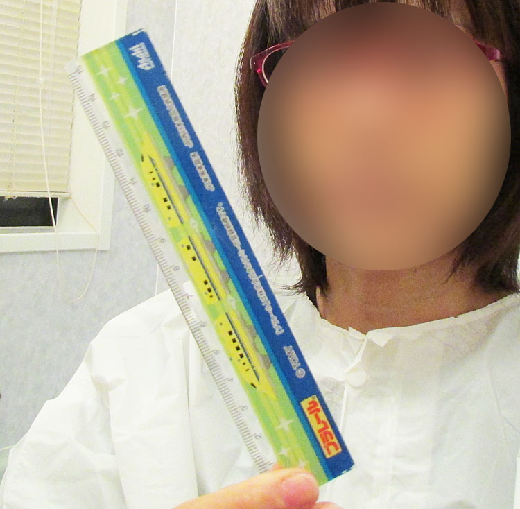 そこに、頭に突き刺すような気持ちで定規を当て、長さを計ります。