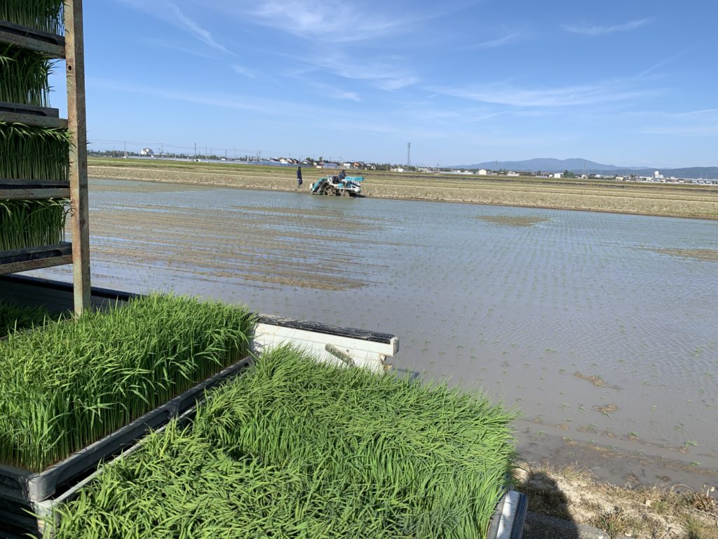 本業の農家さんなので、ひろーーーい田んぼに機械で苗を植えていきます。